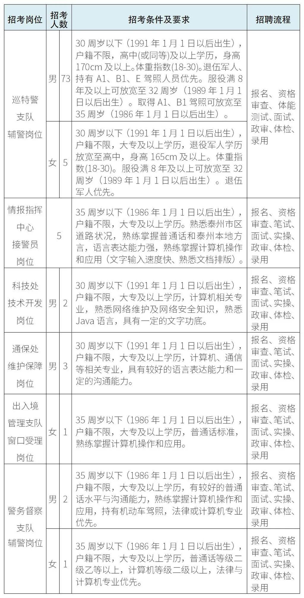 泰州市公安局根據工作需要,現面向社會公開招錄警務輔助人員,有關事項公告如下: