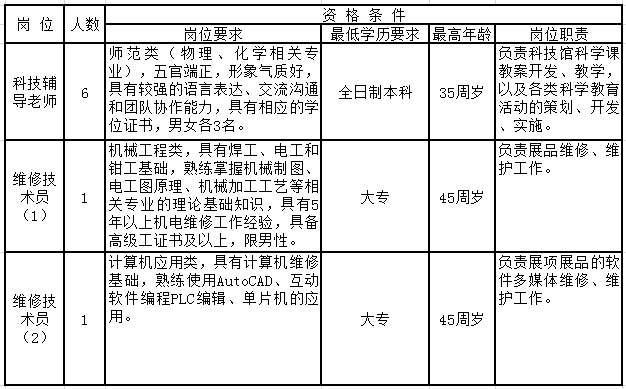 泰州科技館因工作需要,面向社會公開招聘8名編外用工人員,現(xiàn)將有關事項在新泰州人才網公布如下: